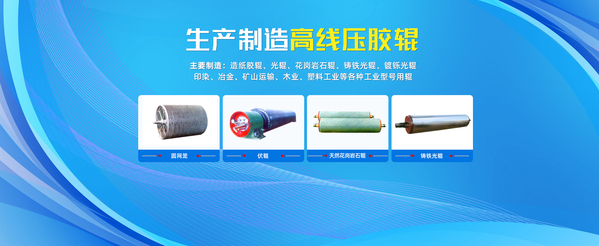 主要制造:造紙膠輥、光輥、花崗巖石輥、鑄鐵光輥、鍍鑠光輥、印染、冶金、礦山運(yùn)輸、木業(yè)、塑料工業(yè)等各種工業(yè)型號用輥